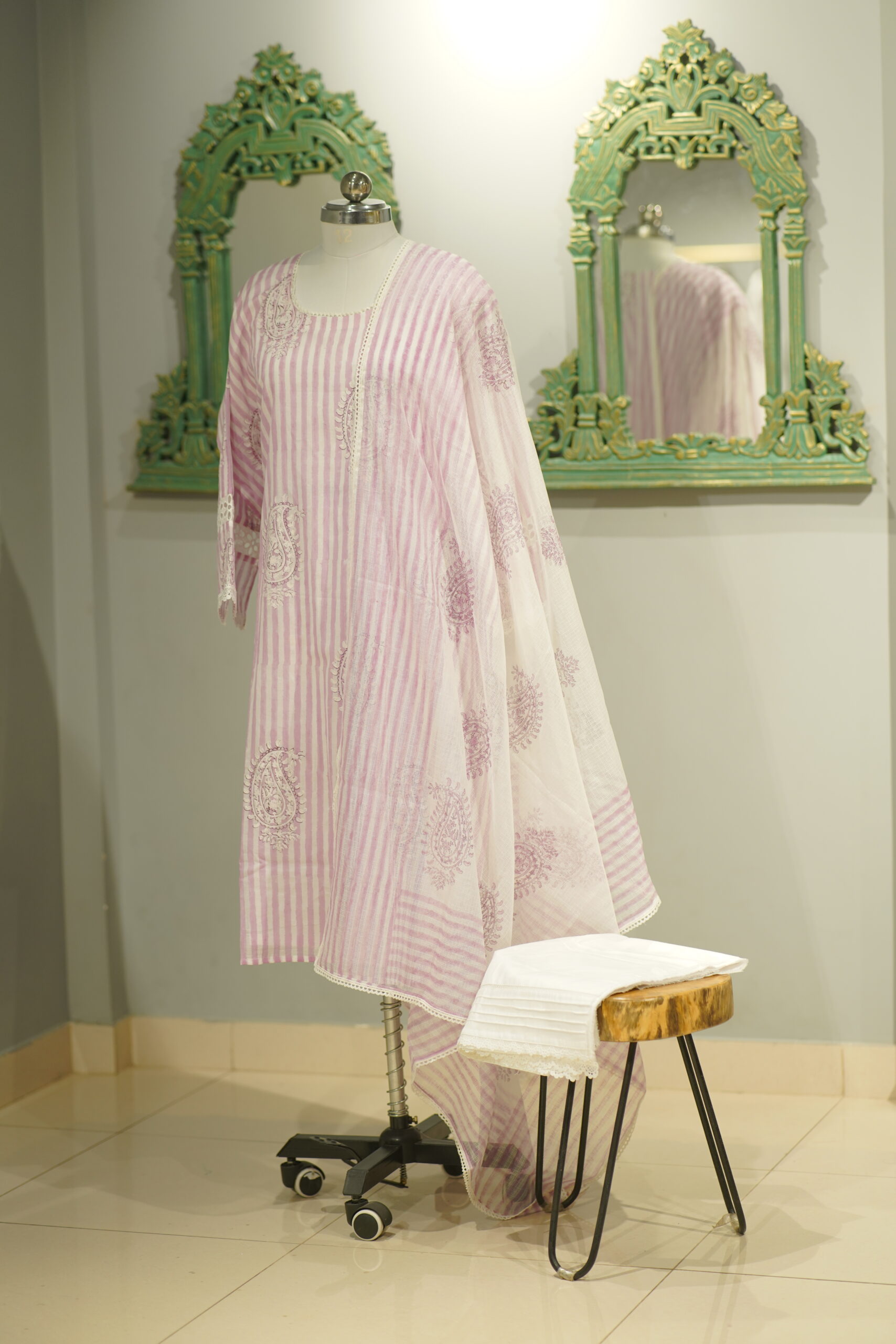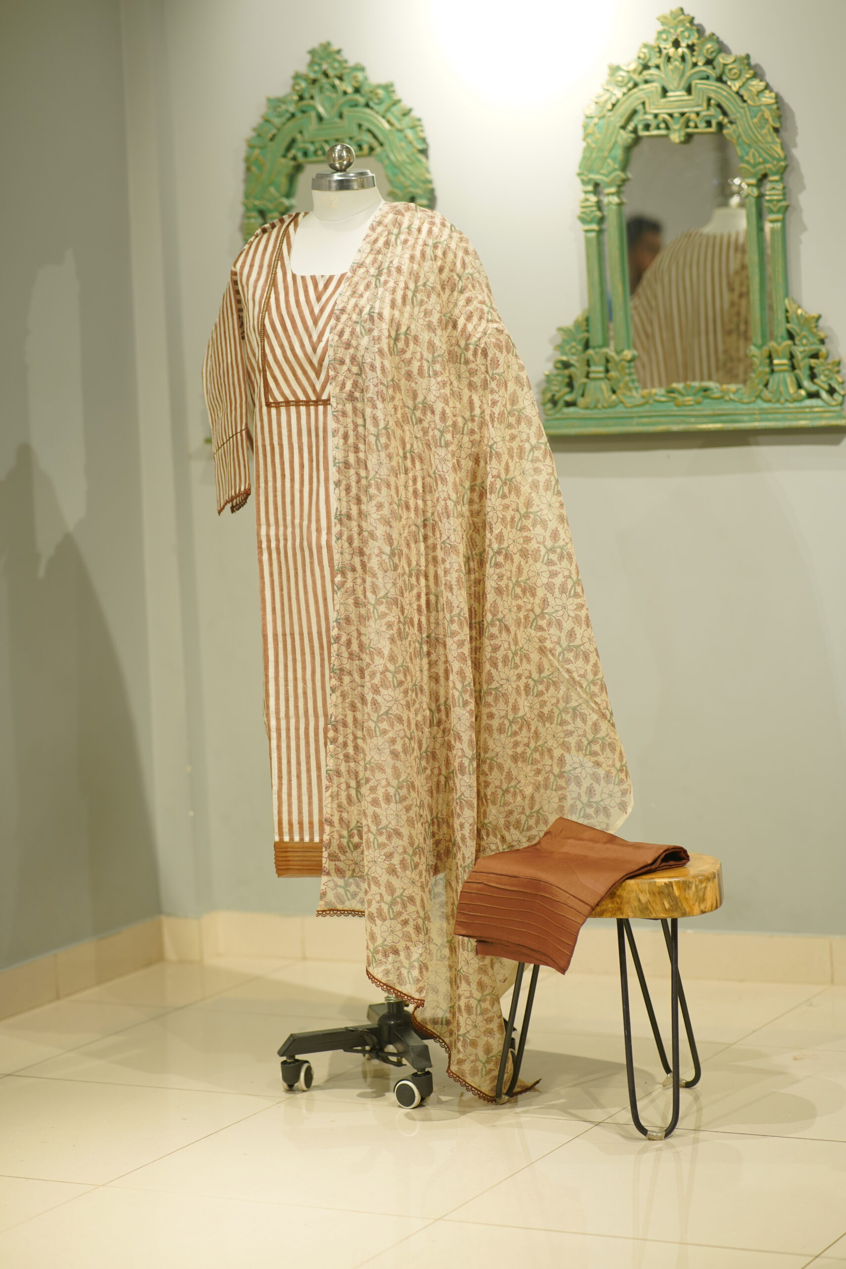 What is the "Block Prints Redefined" collection?"Block Prints Redefined" is our exclusive collection featuring pure fabric ladies' suits adorned with elegant colors and traditional block printing techniques. This collection represents the perfect blend of heritage craftsmanship and contemporary design, available for the first time in Kanpur.