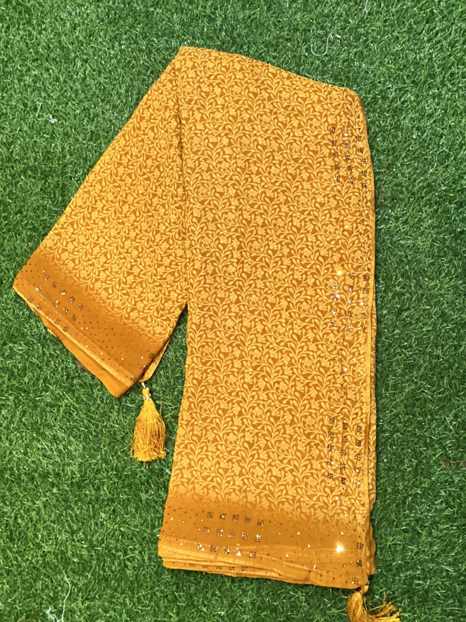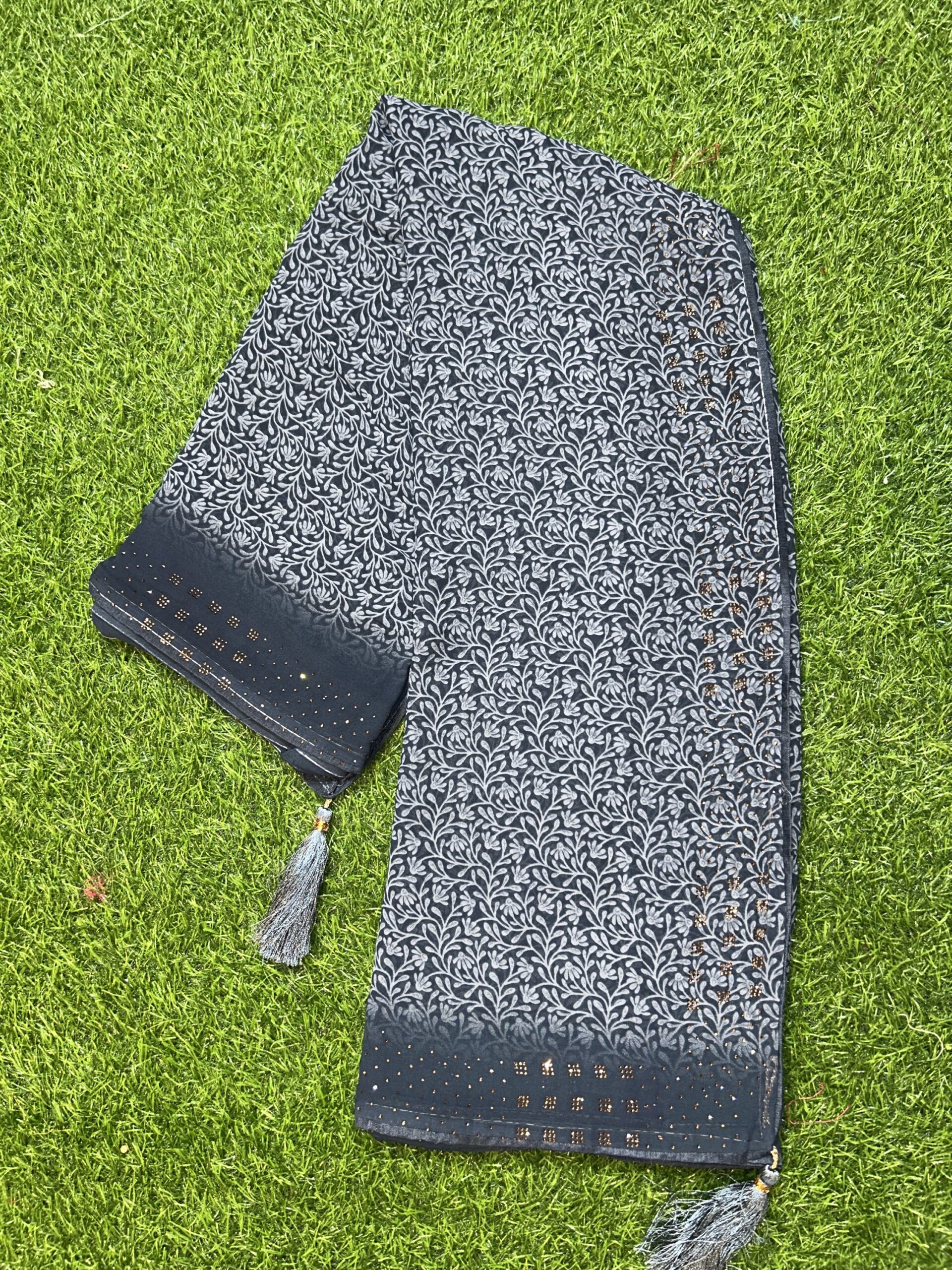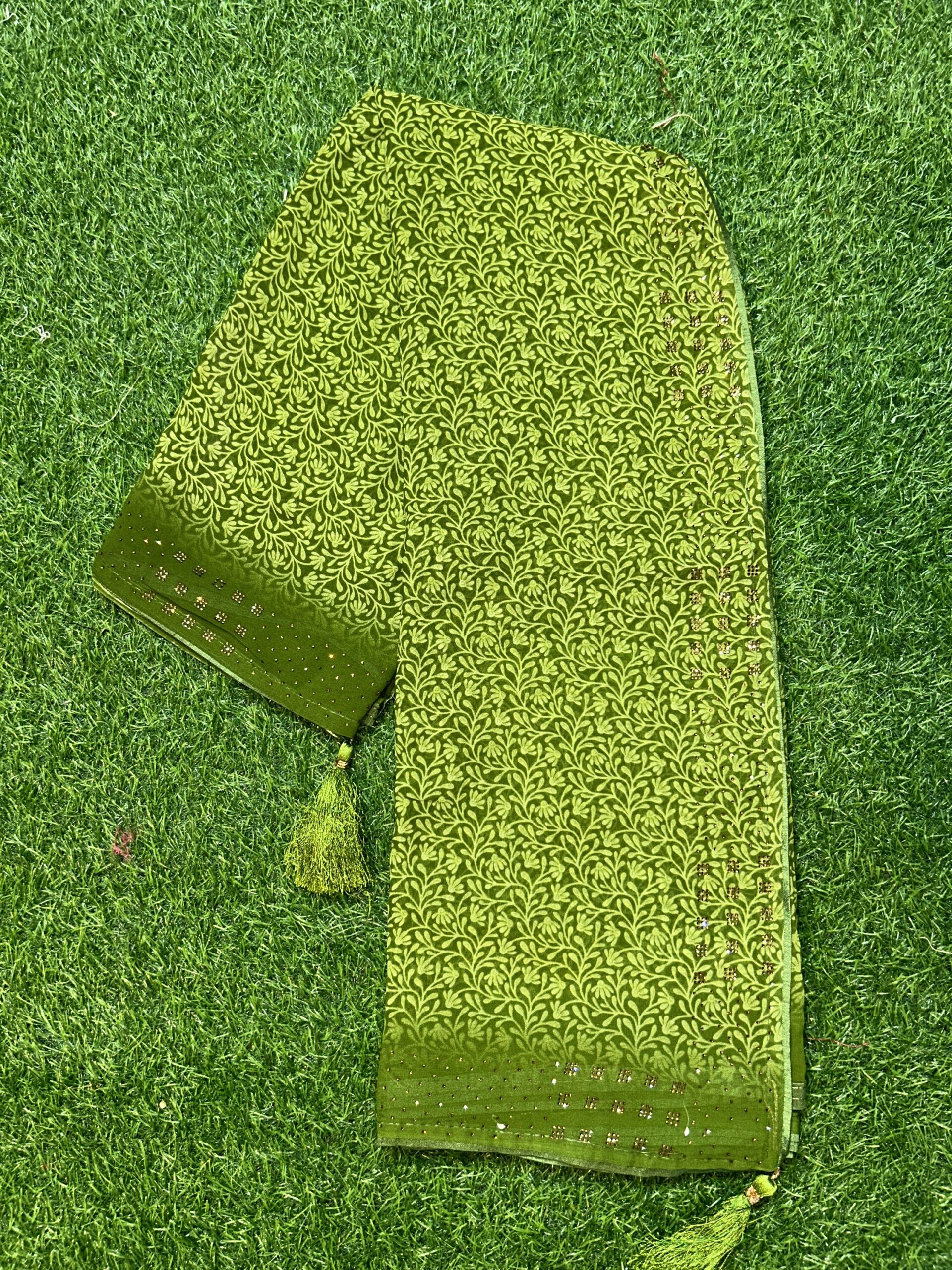 Forest design elegant beauty and dyc Siroski Georgette fabric easy to wear and homewashable all purpose saree for woman and girls both