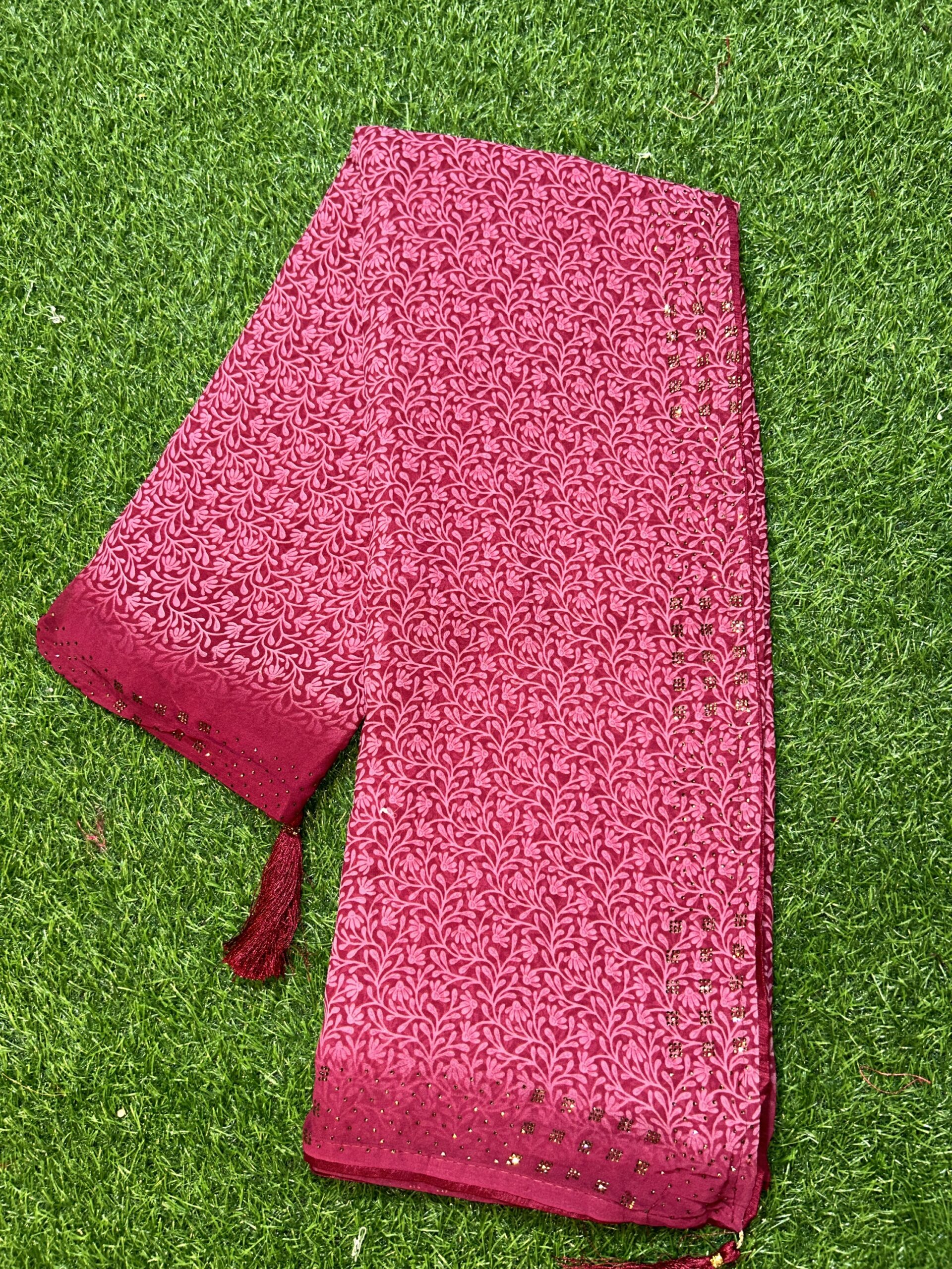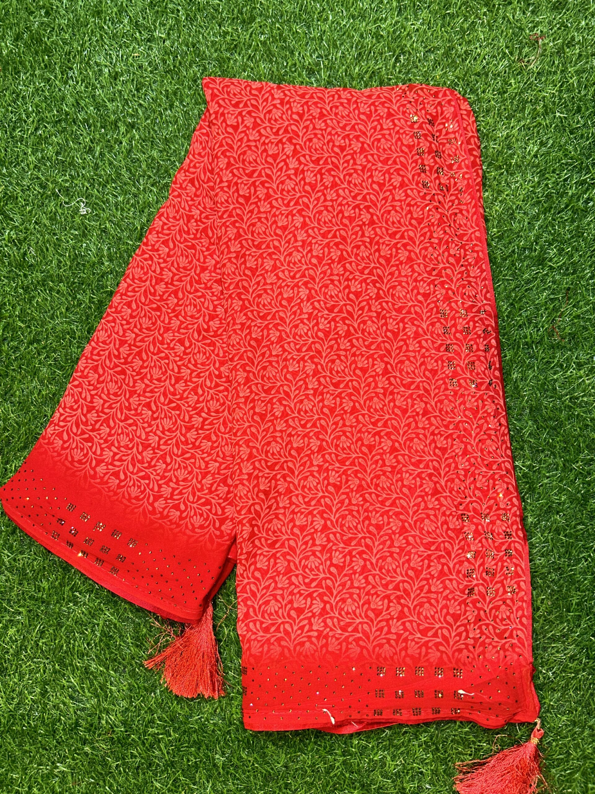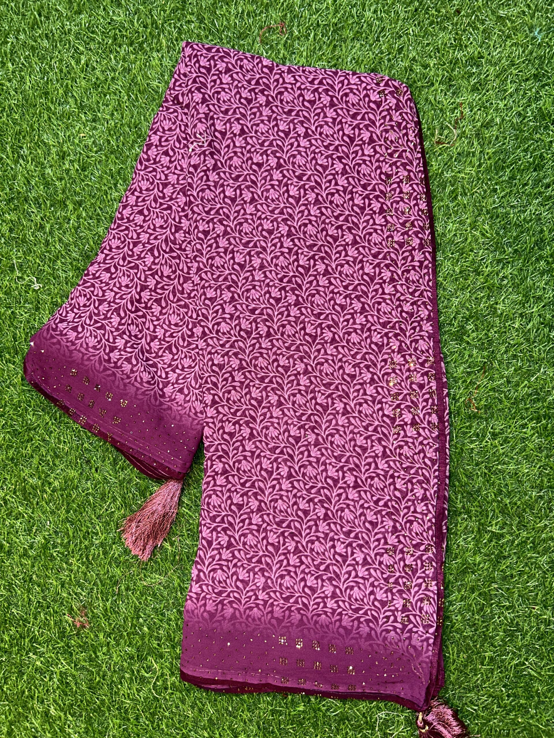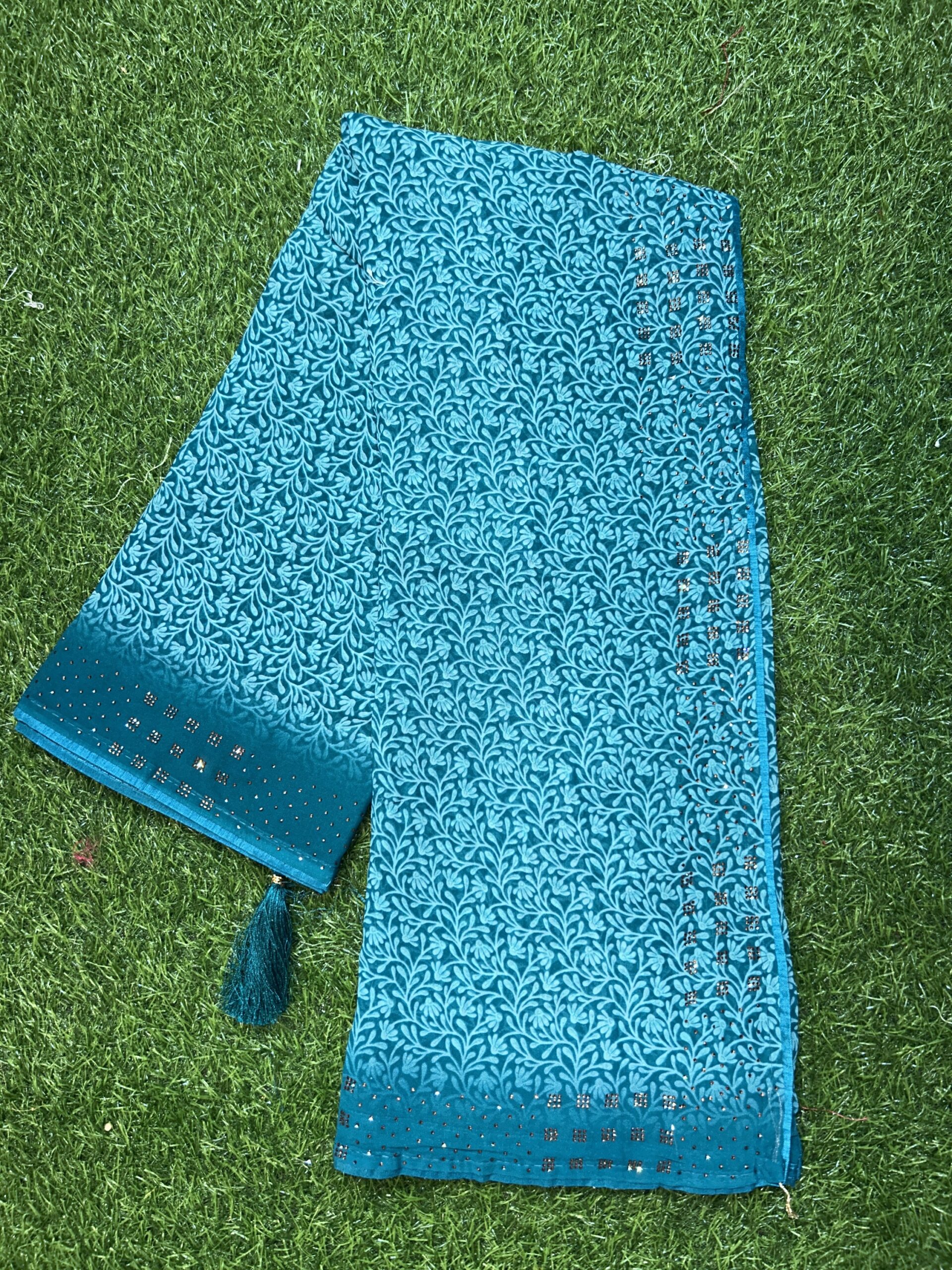 Forest design elegant beauty and dyc Siroski Georgette fabric easy to wear and homewashable all purpose saree for woman and girls both
